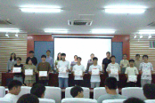 接着,获奖员工代表肖宁峰上台发言,由衷的感谢领导的支持与鼓励、指导老师的信任和悉心教导。表示此次比赛让同学们成长了许多,不仅锻炼了同学们的实践能力,还磨炼了同学们的意志。长路漫漫,同学们必将满怀信心去迎接生活和学习中的挑战。