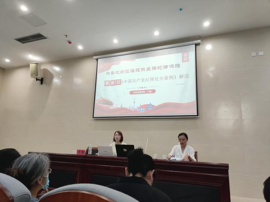 为扎实推进党纪学习教育走深走实,进一步提升党员遵纪守法、廉洁自律意识、纪律意识和规矩意识,7月10日下午,贵州省委党校兰图教授在伟德victor1946南校区行政楼第一报告厅开展题为《为奋进新征程提供坚强纪律保障》的专题辅导报告。报告会由建筑工程公司党委书记何璘主持,伟德victor1946、传媒公司、材料公司全体党员师生参加学习。
