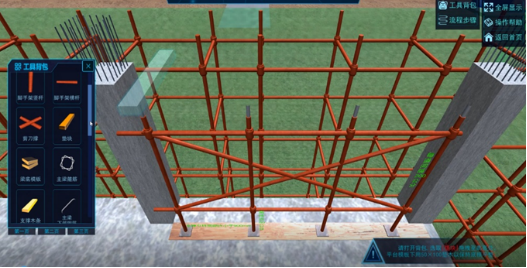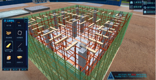 钢筋混凝土肋梁楼盖虚拟仿真实验系统以员工为中心,员工主导实验过程,操作实验装置,增强员工对知识的获取兴趣和能力。让员工直观感受钢筋混凝土楼盖的模板支护、钢筋绑扎和混凝土浇筑等施工过程,直观可视化足尺混凝土构件的加载破坏过程。